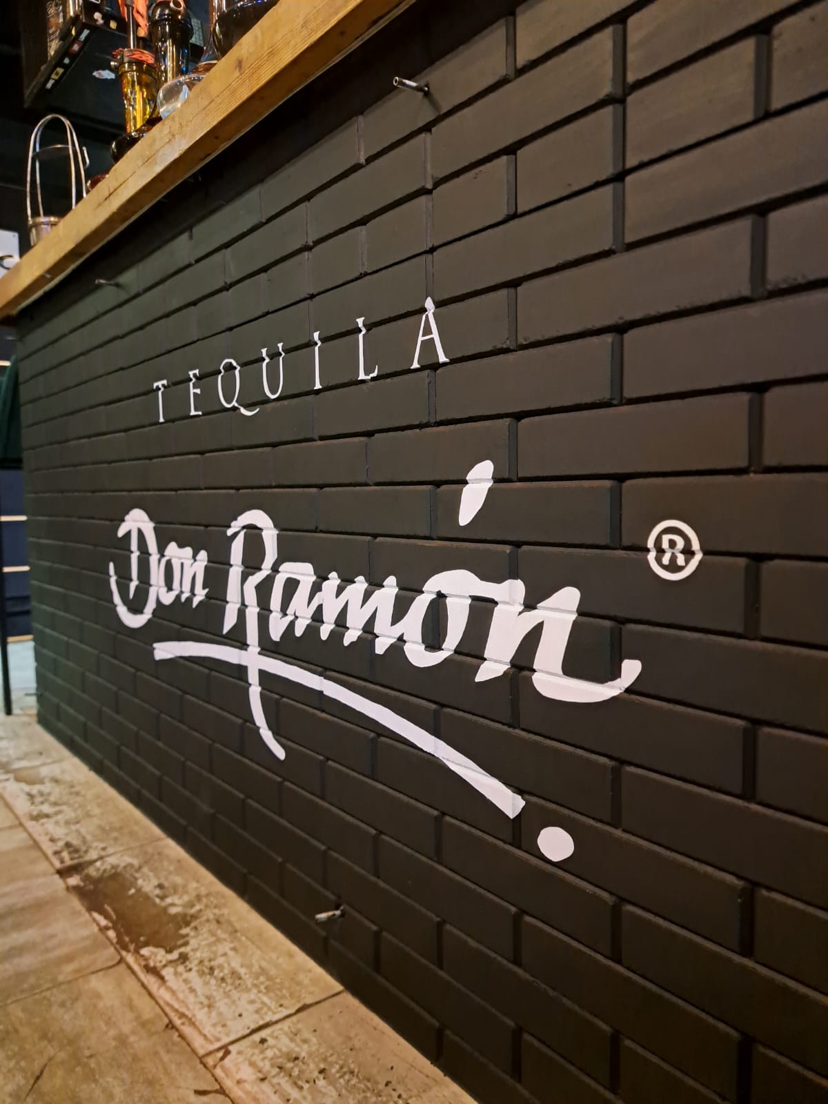 В рамках оформления интерьера гастробара Gastreat в Алматы студией ArtViko была выполнена роспись барной стойки с фирменным логотипом Don Ramón Tequila.